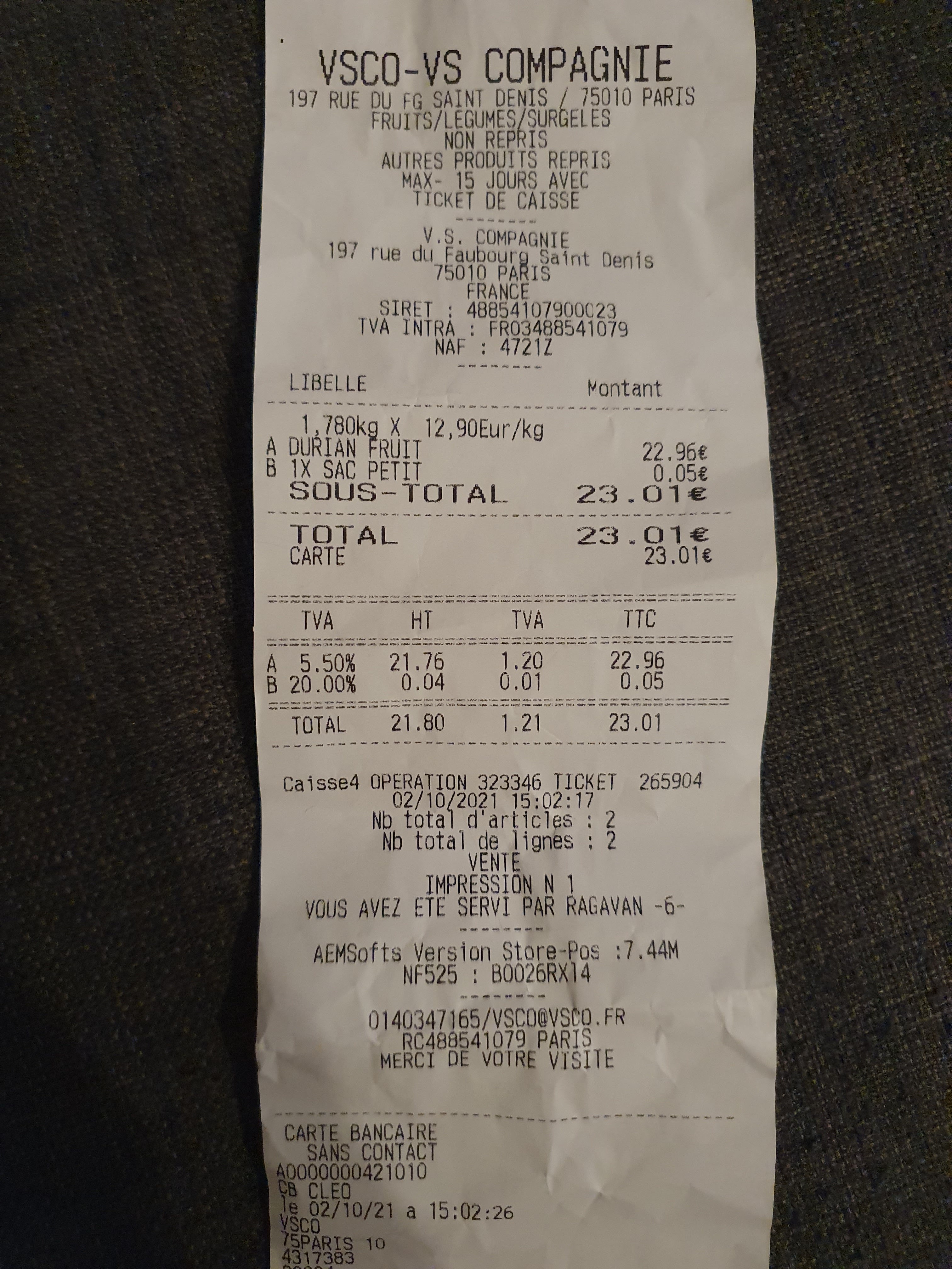 I do not recommend Vsco-shop Nandhi for fresh fruits or legumes!. Bought a durian today. So disappointed to see a total raw and unripe fruit when we cut it. Called to ask if they can exchange or refund, and the person have an audacity to tell me to press the fruit to check if it is ripe? Serious!!! Je ne recommande pas Vsco-shop Nandhi pour les fruits frais ou les légumineuses !. J'ai acheté un durian aujourd'hui. Tellement déçu de voir un fruit total cru et pas mûr. Appelé pour demander s'ils peuvent échanger ou rembourser, et la personne a l'audace de me dire de presser le fruit pour vérifier s'il est mûr ? Sérieuse!!!